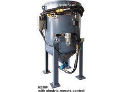 The operator controls blasting from a remote control handle at the nozzle. Pressing the handle starts blasting; releasing it stops blasting.